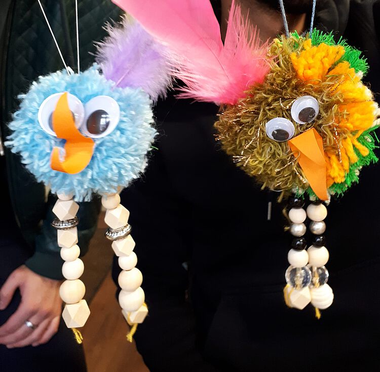 Begeistert und stolz nehmen sie die kleinen Dinge aus Speckstein, Kieselsteinen, „Edelsteinen“, Wolle, Farbe, Pappe, Papier und Naturmaterialien mit nach Hause.
